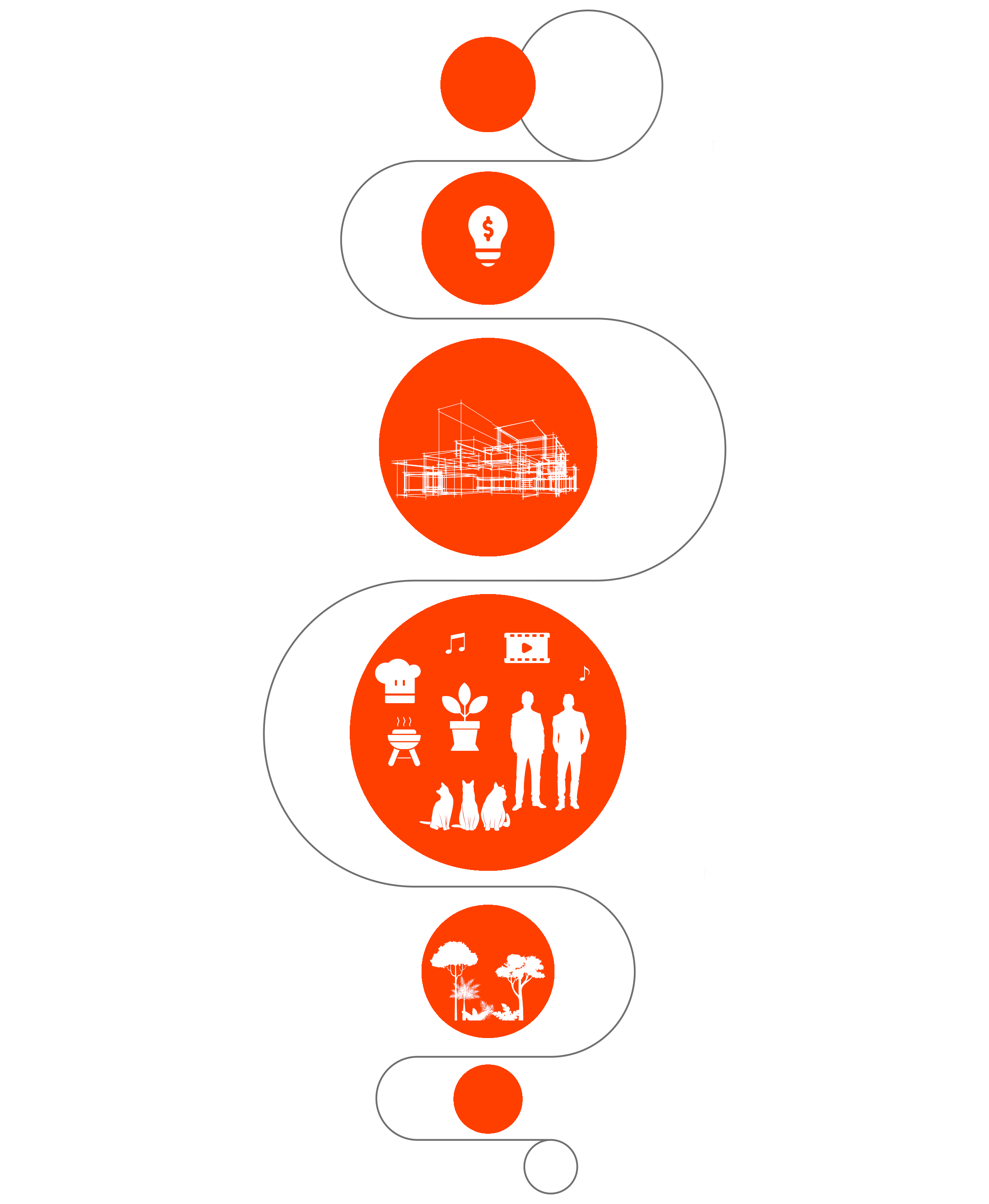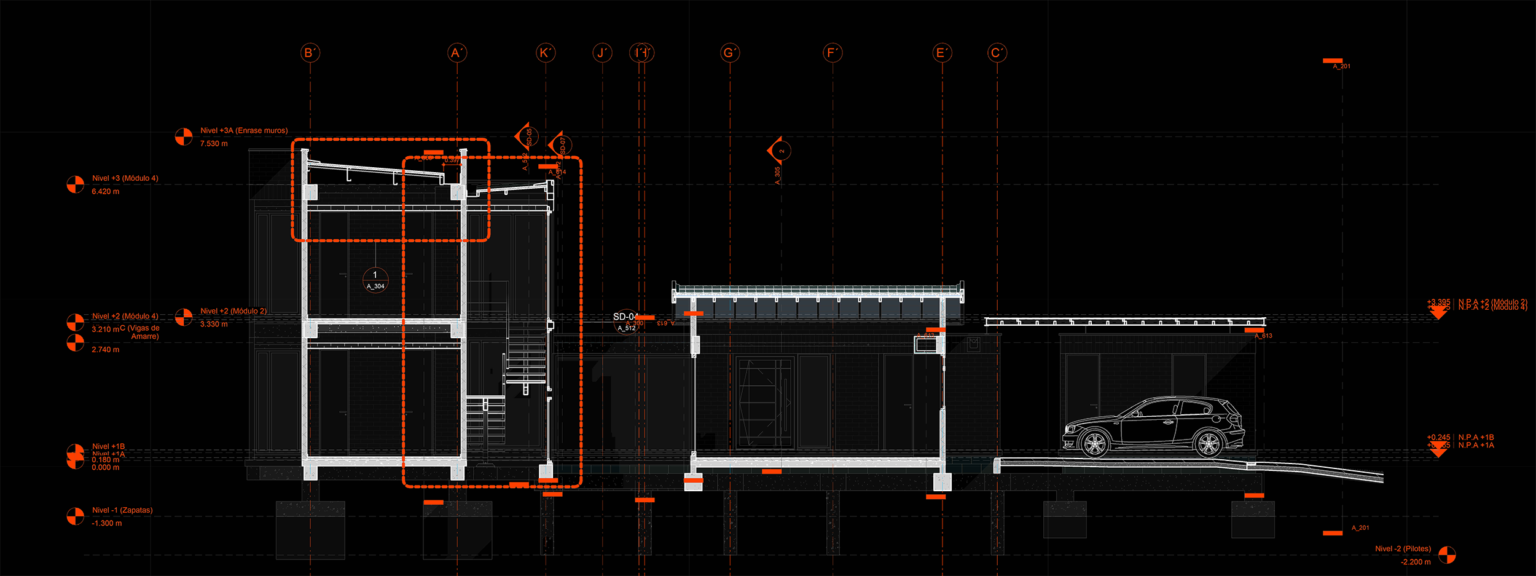 Los diagramas revelan lo que no siempre se ve: la lógica detrás de la forma. Sistema estructural, jerarquía de espacios, luz, ventilación y relaciones visuales. Una vivienda que se construye desde el pensamiento antes que desde el objeto.